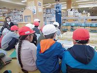 まずは、身近な粟野図書館へ。何度か足を運んだことがある子も、職員の方の説明を聞き、新たな発見をすることができました。