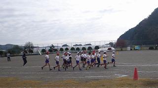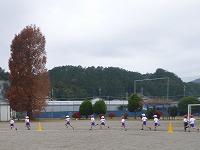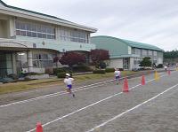 1・2年生は1.5㎞の距離です。ピストルの合図と同時に勢いよくスタートし,
