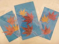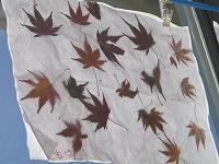 先日の校外学習で拾ってきた落ち葉を使って、2年生は半紙で押し葉を、3年生はしおりを作りました。