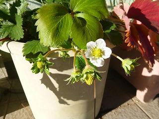 そんな冬支度の中、花壇の水仙が芽を出し、プランターの莓は実をつけました。