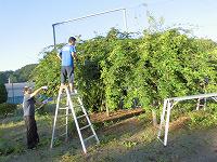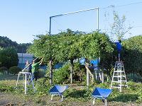 教室や廊下の窓は子ども達では手が届かない箇所を拭いてもらいました。おかげさまで、教室が一段と明るくなりました。また、花壇に生い茂っていた黄色い花(メランポジウム)の除去や藤棚の剪定、プール周り、農園の草刈り、枯れ木の伐採など、校庭も見違えるほどきれいになりました。