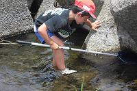 2年生は生活科で3年生は総合学習で、川の生き物を調べに一緒に思川へ行きました。