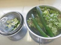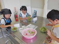 きゅうりを切ったりサラダ菜をちぎったり、トマトのへたを取ったり準備しました。