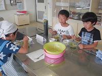 2年生が一生懸命育てた野菜が大きく立派に育ったので、1年生3年生を招待し、サラダパーティーを開きました。