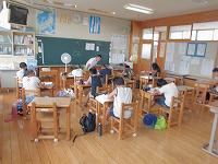 学年ごとに設けられた学習相談には希望する子が来て、自分で用意してきた学習に取り組んでいます。先生は見守りながら、個別に支援します。