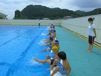 その後はプールの時間です。泳いだり、潜ったりしながら子ども達の元気な声が空まで届く勢いに、太陽が顔をのぞかせてくれそうです。
