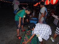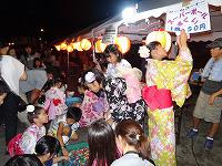 清洲地区のふれあい盆踊りが開催され、清一小と清二小の6年生が「わなげ」と「スーパーボールすくい」の出店のお手伝いをしました。