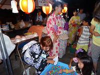 「いらっしゃ~い!」「楽しいですよー!」と元気に声をかけながら、笑顔で接客し、盆踊りを盛り上げました。