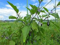 農園のなすやミニトマトも雑草と背比べをしながら実をつけました。