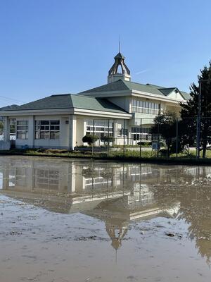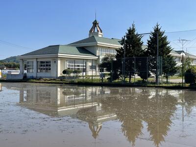 それは、代かきをした田に校舎が映った風景です。