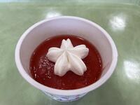 献立は、「黒米ご飯(ごま塩)」「鶏肉のから揚げ」「コールスロー」「すまし汁」「お祝いいちごゼリー」「牛乳」です。