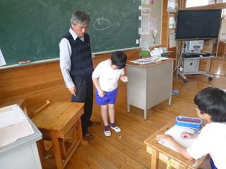 校庭で50m走、ソフトボール投げを、体育館では反復横跳び、上体起こし、立ち幅跳びをやりました。反復横跳びは本校の子供たちが得意な種目です。初めてやった1年生もルズムをつかんで何回も跳ぶことができました。ソフトボール投げはちょっと苦手、でも高学年の中には投げ方のコツを心得え、40mも投げた子がいました。