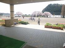 ご覧のように、満開のこぶしやチュウーリップ、桜が子どもたちの登校を待っています。