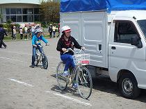 3年生から6年生は校庭で自転車の正しい乗り方を一人ずつ練習しました。