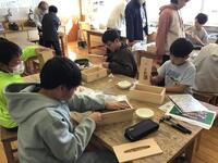 スタッフの方から、清一小の子達はカンナのかけ方がとても上手と褒めていただき、嬉しく思いました。仕上げに、紙やすりで磨きあげて完成しました。