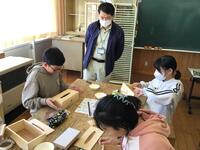 今回製作したのは、ティッシュ箱とマイ箸の2つでした。限られた時間内に児童が完成させることができるよう、サポートしていただいた5名の方々に感謝致します。