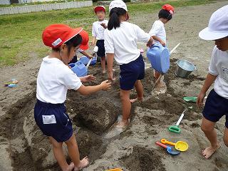 1・2年生は、図工の時間に砂場で造形遊びを楽しみました。