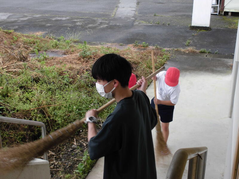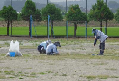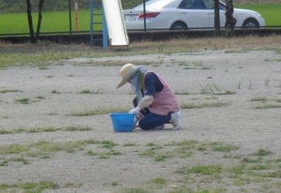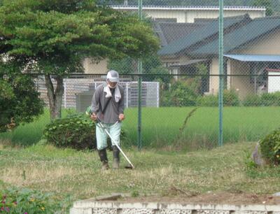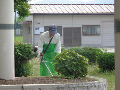 校庭の草をむしってくださったり、芝生付近の伸び放題の草たちを、草刈り機で刈り込んでくださったり。