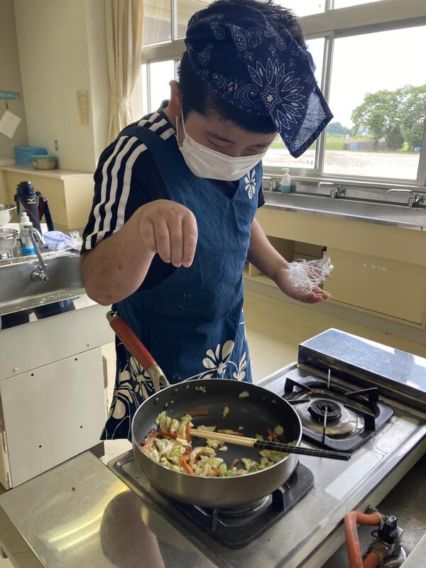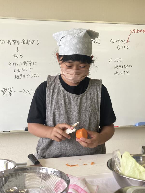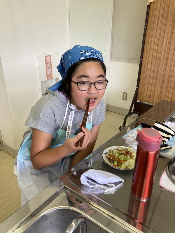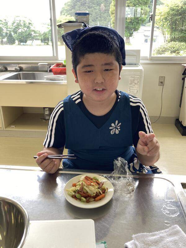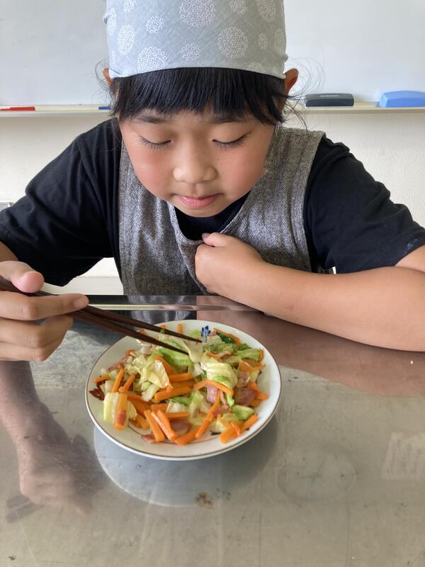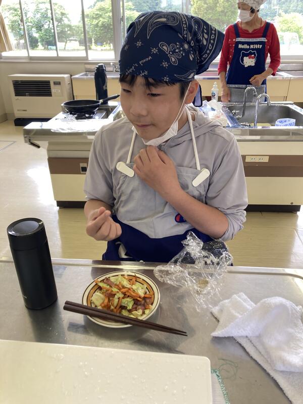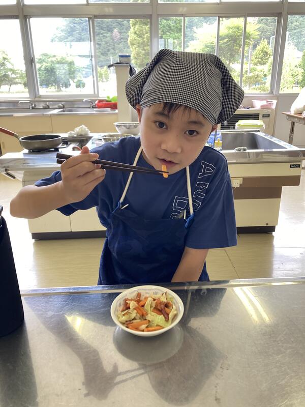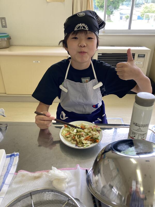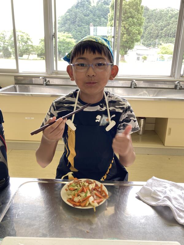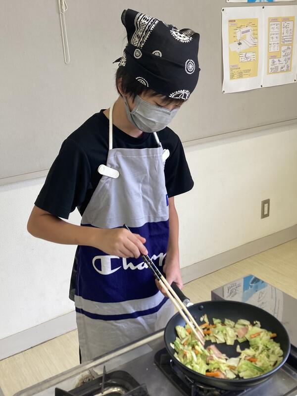 5・6年生が、家庭科の調理実習で野菜炒めを作りました。
