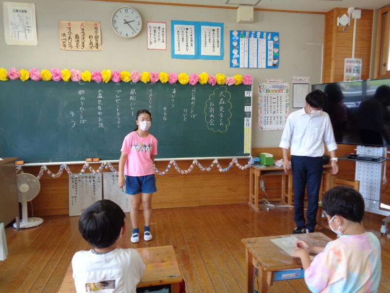 5校時には、3・4年生がサプライズのお別れ会を開きました。