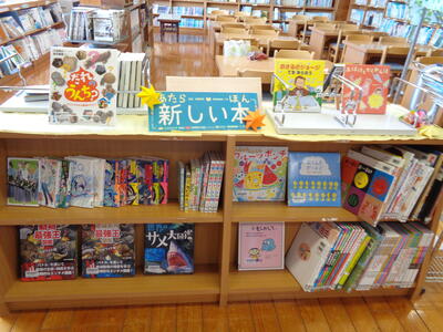 図書室に新刊本が勢ぞろいしました。子供たちがリクエストした本も棚に並んでいます。