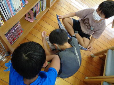 熱中症指数が高いときは、図書室で読書する児童の姿も見られます。