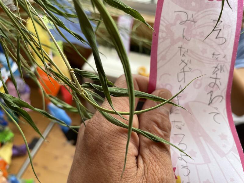 短冊に込められた願い事は、祖父母の健康やみんなの健康を祈るものがありました。
