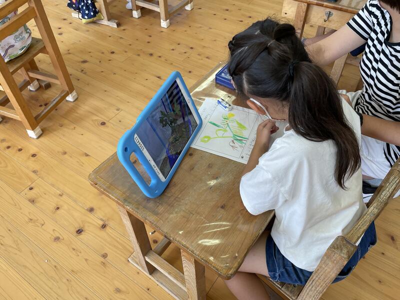 今日みたいな暑い日でもタブレットを使えば教室で観察ができます。