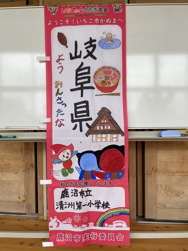 本校は、岐阜県の皆様をお迎えする応援のぼり旗の作成の担当になりました。
