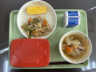 学校給食週間3日目の今日は、鹿沼の名産品である「はと麦」や「にら」などの地場産物を使った給食です。