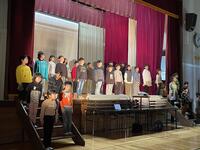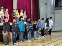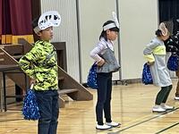 今日の業間には、全校児童が体育館と校庭に半分ずつに分かれて練習を行いました。