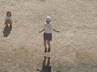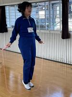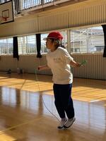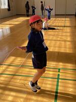 前跳びで長い時間跳び続ける持久跳びと、児童が技を選び挑戦するチャレンジ跳びの練習を行いました。