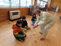 2月5日に、1・2年生は生活科で昔の遊び体験をしました。講師の先生は、地域にお住いの「コマ回し名人」「お手玉名人」「おはじき名人」の5名。そして、「けん玉名人」の校長先生です。