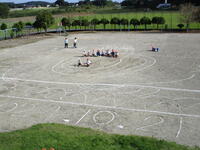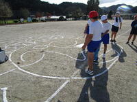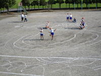 5・6年生が社会科の学習の一環で、校庭に大仏を描きました。