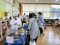 粟野地区学校給食共同調理場の場長様をはじめ3名の方が、本校の給食の配ぜんや喫食の様子の点検にいらっしゃいました。