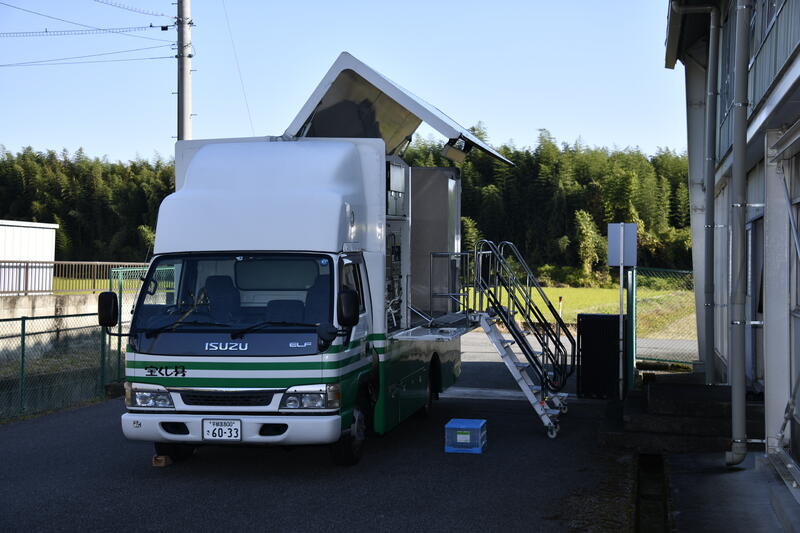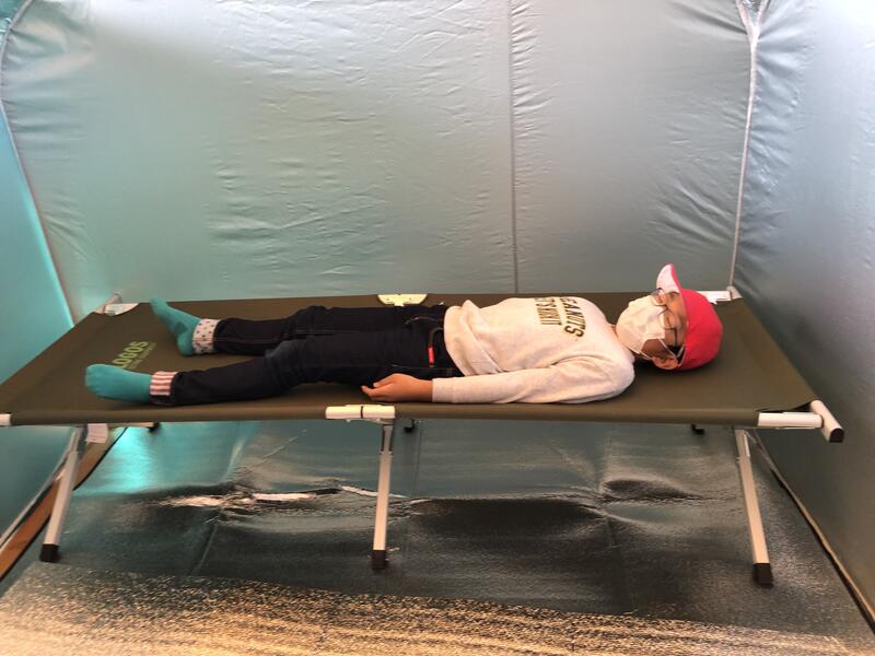 避難所用物品について説明を聞き実際に体験したり、起震車で過去に起きた地震を体感したりしました。