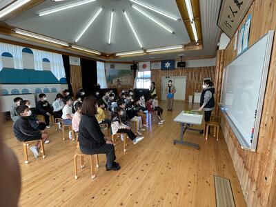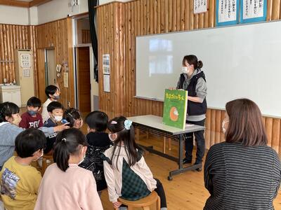 今日は特別に業間の休み時間に「ねこのラーメンやさん」と「たまごにいちゃん」の2冊の読み聞かせをしてくださりました。