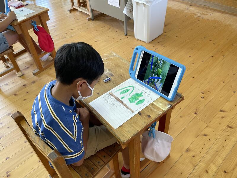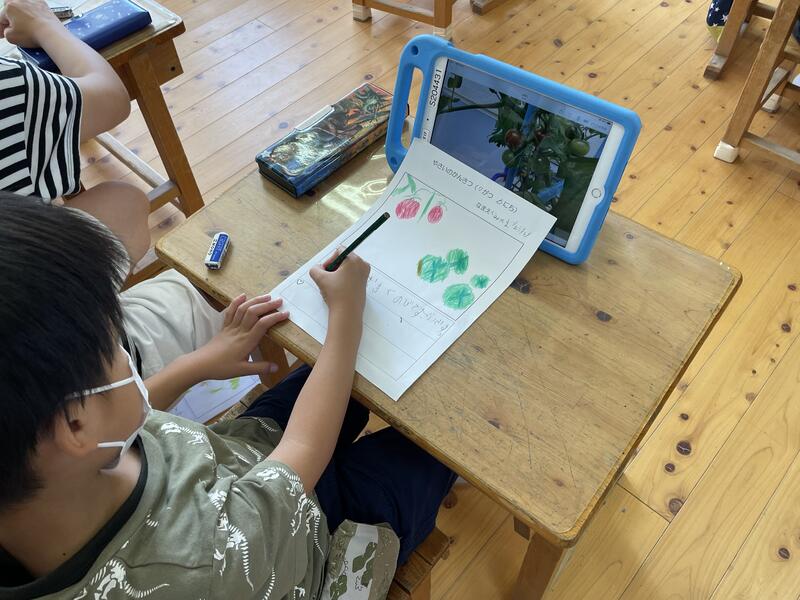 ミニトマトやオクラなど一人一人が好きな野菜を育てています。