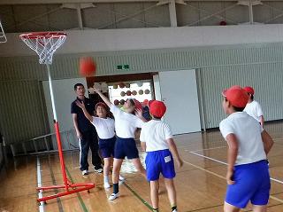 運動クラブは体育館でバスケットボールをしました。2面コートを使ったので運動量たっぷり、汗びっしょりになりながらゲームを楽しみました。