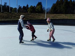 いつの間に歩いていた子が滑っているではありませんか。転んでは立ち上がり、足にまめができたらカットバンを貼って、時間の限り滑っている子どもたちのたくましさに感心しました。