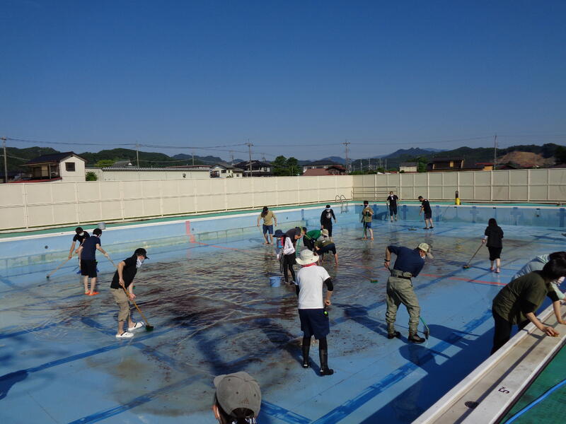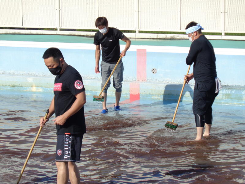 午前7時から本年度第1回目の奉仕作業でプール清掃を行いました。