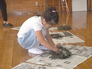 つるをまるく整えるのに悪戦苦闘の子供達。