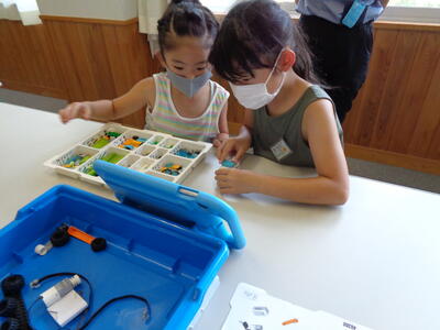 今日は、1・2年生が、ブロックを使ったプログラミング学習を行いました。1・2年生でペアになり、まずは、ブロックで扇風機の組み立てです。次に、タブレットにつなげ「回る」「光る」「止まる」「続ける」「逆に回る」などの指令を出します。指令どおりに動く扇風機に、みんな大興奮。最後に、それぞれのペアが出した指令の発表会をしました。いろいろな指令の出し方があって、感心したり、クスッとしたり。楽しくプログラミングが学べました。