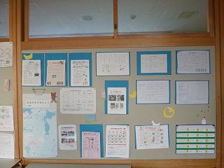 5・6年生の教室に子どもたちの作品が掲示された時の写真です。