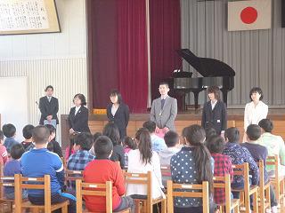 新任式では1名の先生の紹介がありました。6年生の代表児童が本校の良いところを紹介しながら歓迎の言葉をしっかりと述べました。