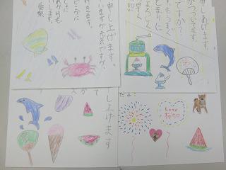 5・6年生は、書写の時間を使って、暑中見舞いを書きました。