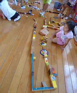 ペットボトルのふたや、つみき、ブロックなどなど、オープンスペースのものを総動員。