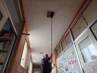 体育間の窓は先週から始めています。卒業式の会場になるのでそこは力を入れています。