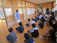 児童には、4人の先生方のほかに、昨日はいらっしゃらなかった2名の先生方のお名前を紹介していました。