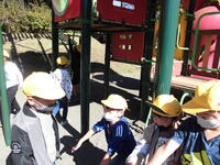 そして、最後に鹿沼運動公園に行って、園内の設備で遊んだあとお昼ご飯を食べ、園内を歩いて、落ち葉やどんぐりなどを拾いました。拾ったどんぐりなどは、11月の生活科の制作活動の材料に使う予定です。